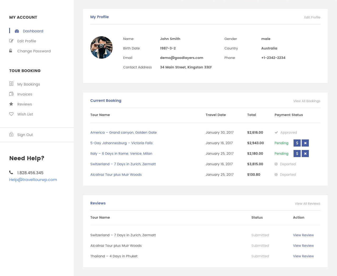 After creating an account, you'll be able to track your payment status, track the confirmation and you can also rate the tour after you finished the tour.